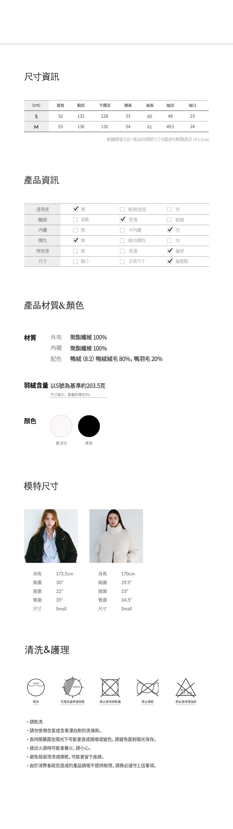 內部填充了高品質的鴨絨與羽毛,提供卓越保暖性與輕盈穿著感,設計上加入了彈性袖口能有效阻擋冷風
